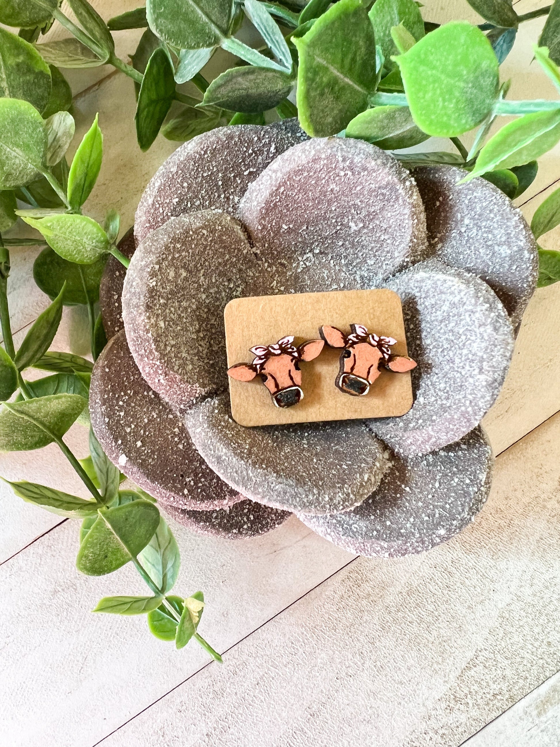 Hand painted cow stud.