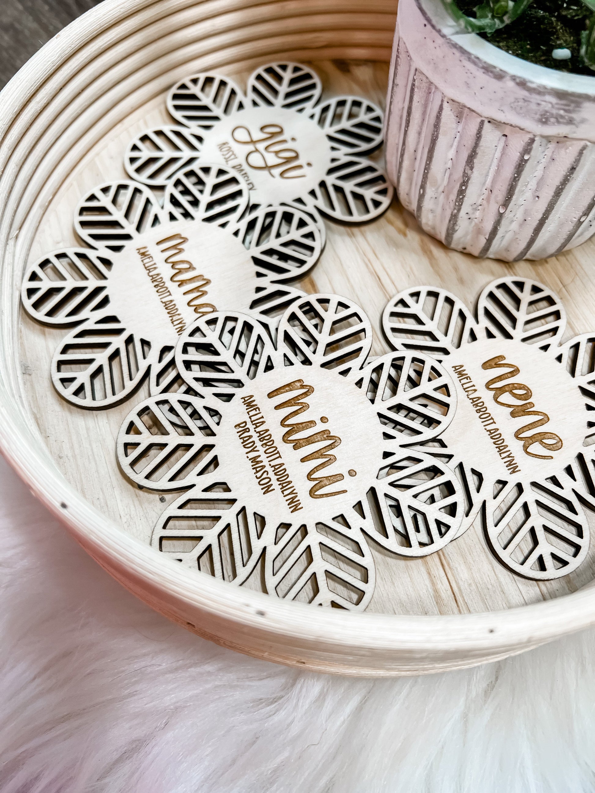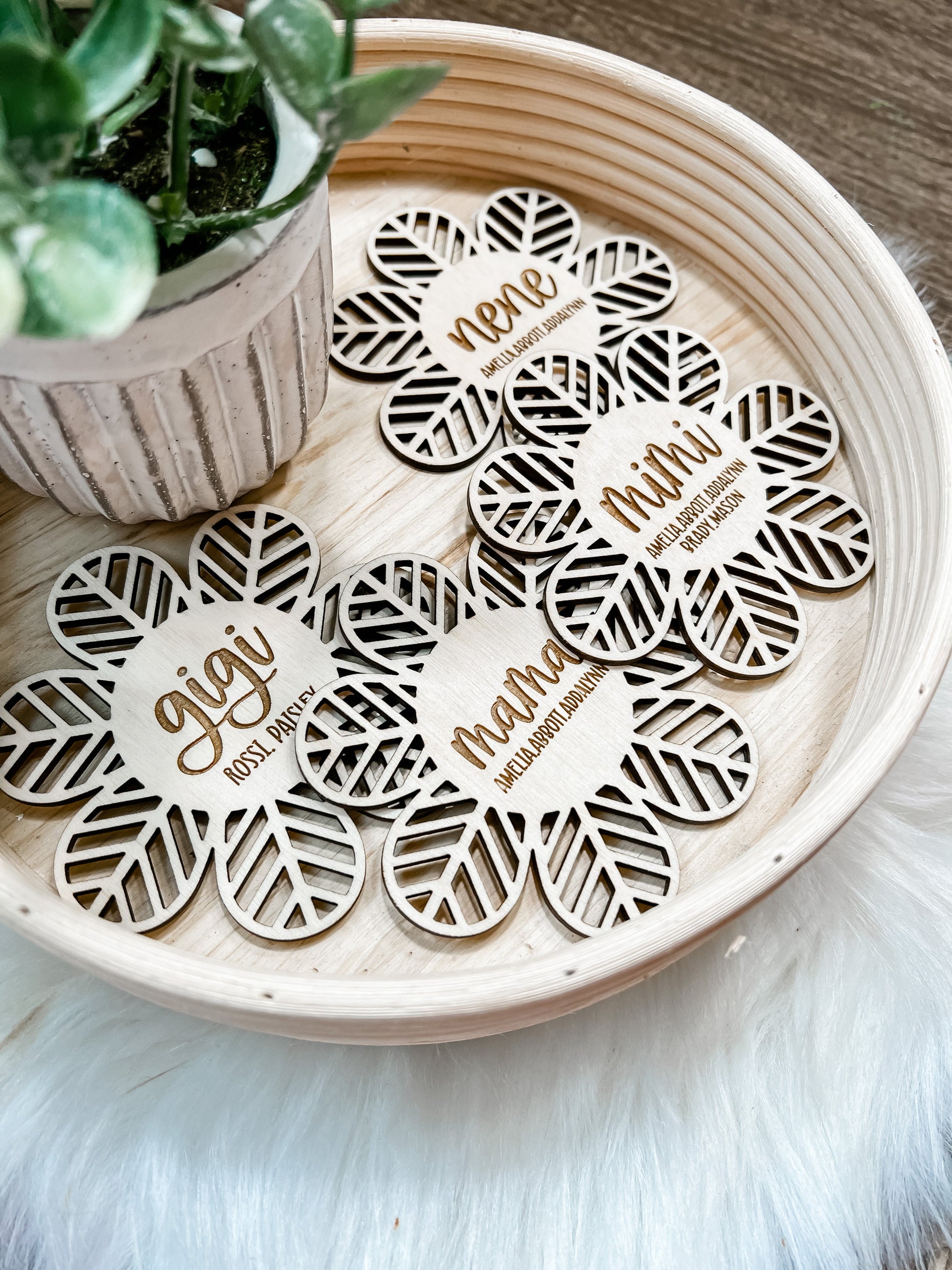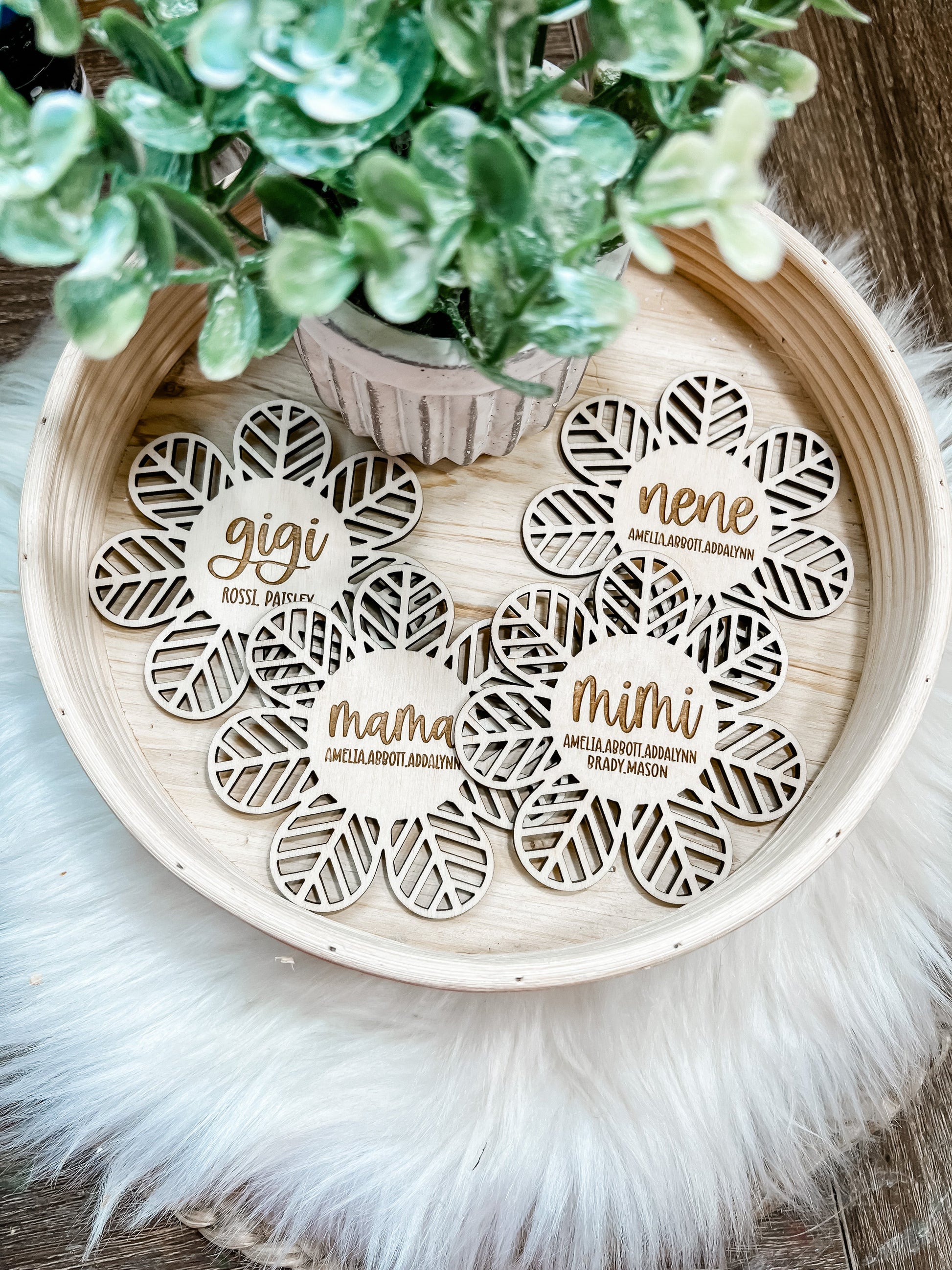 These magnets are 3.5 inches in size. They come with a custom big name and up to 8 small names under it.