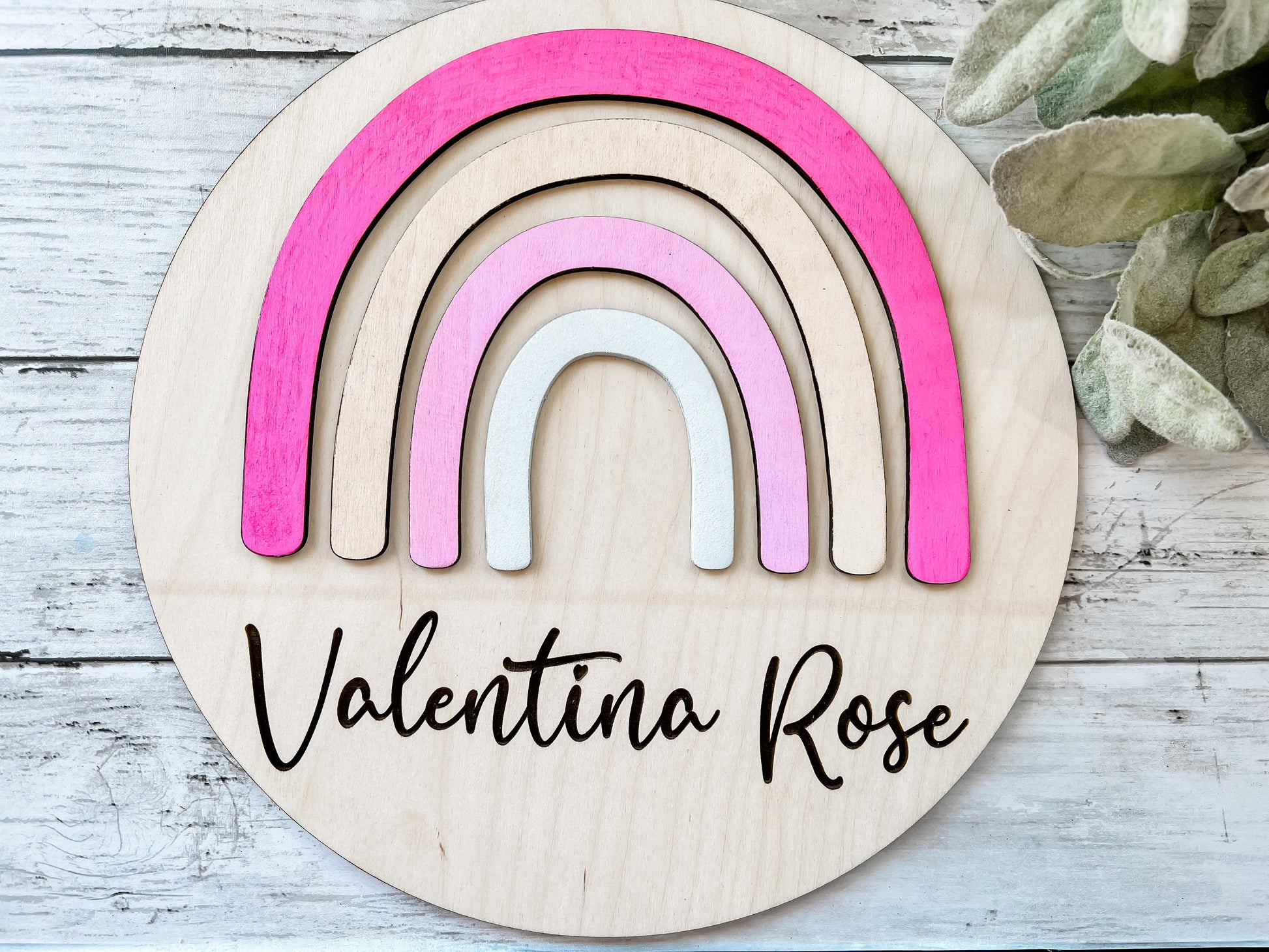 This sign is 11 inches and has the name engraved and painted rainbow attached for a raised effect.